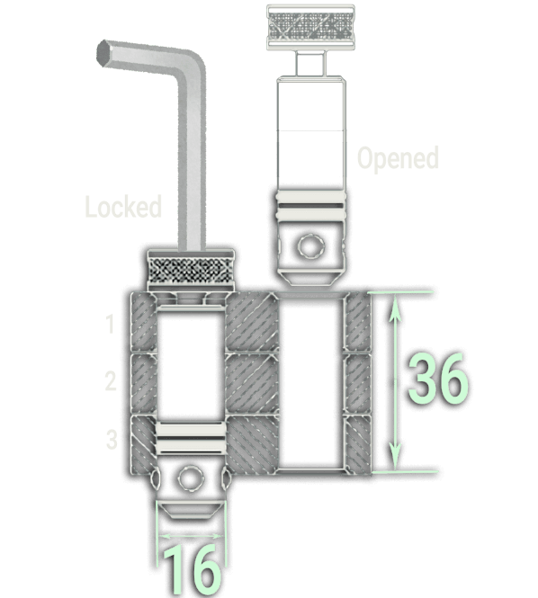 Every hole surface on K16 Table Tops/Fixtures share 12mm of plate thickness. Therefore this Long Ball-Lock Pin allows you to attach any two fixture to your table (toggle clamps/stops/angles/large angles/blocks). Or with creativity: any three fixtures together.